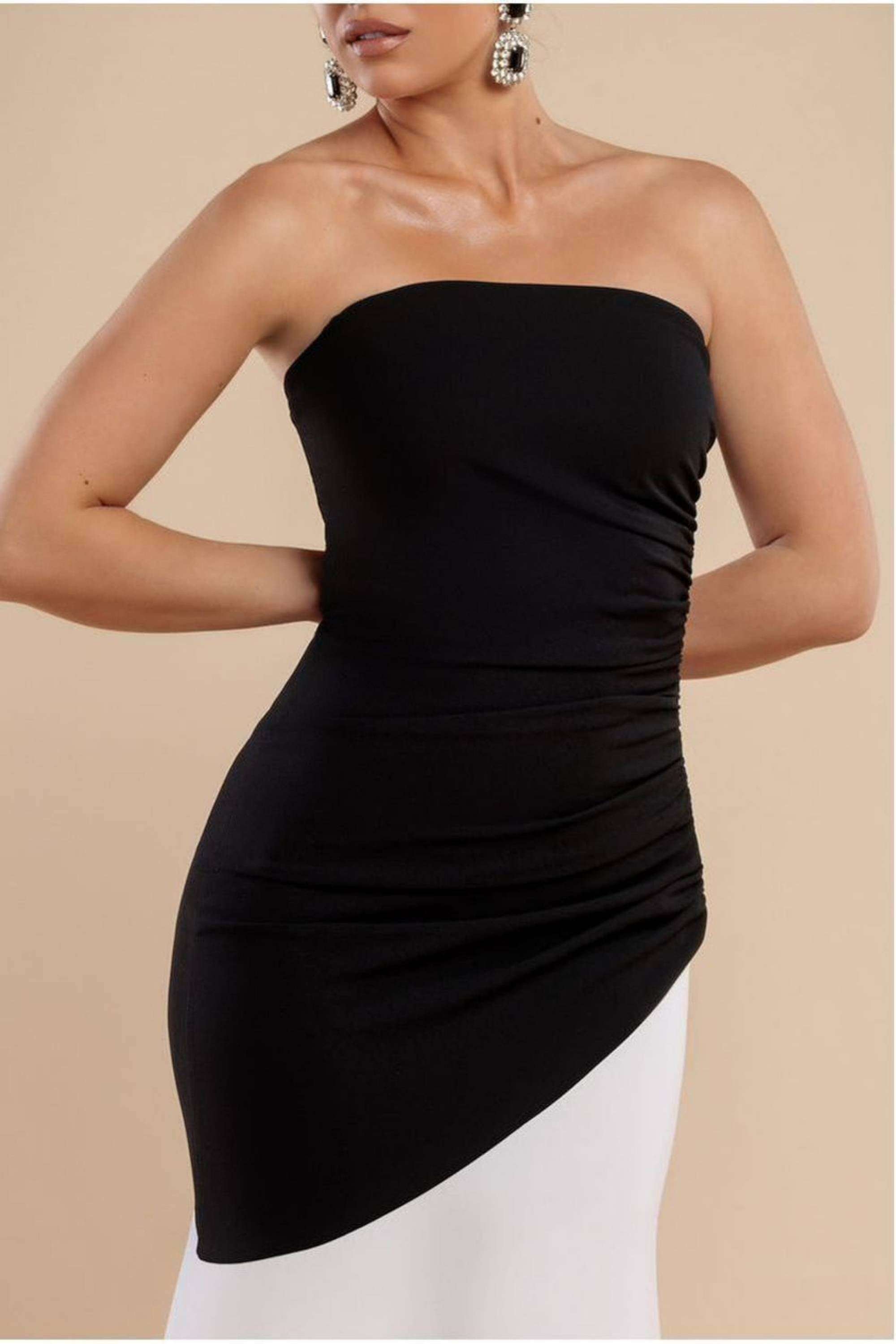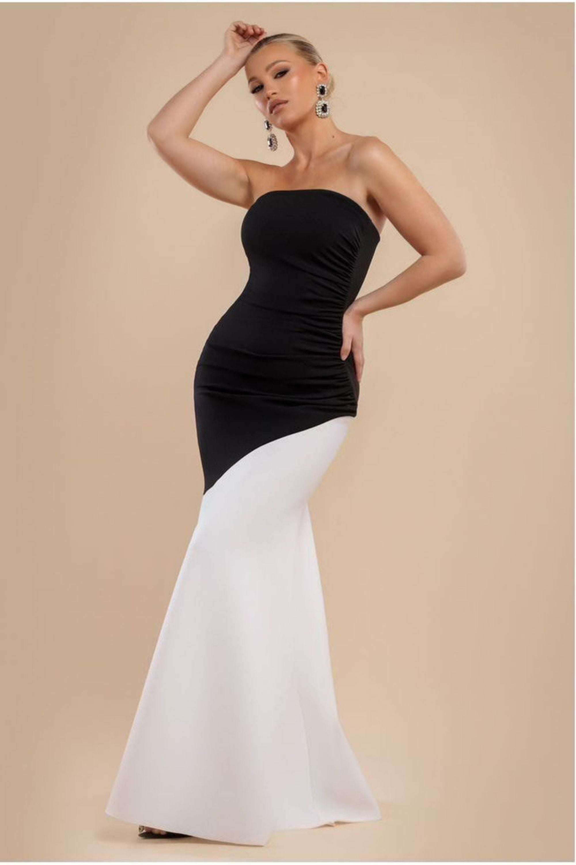 Monochrome Contrast Maxi Dress- Black Cream by Goddiva DR4668