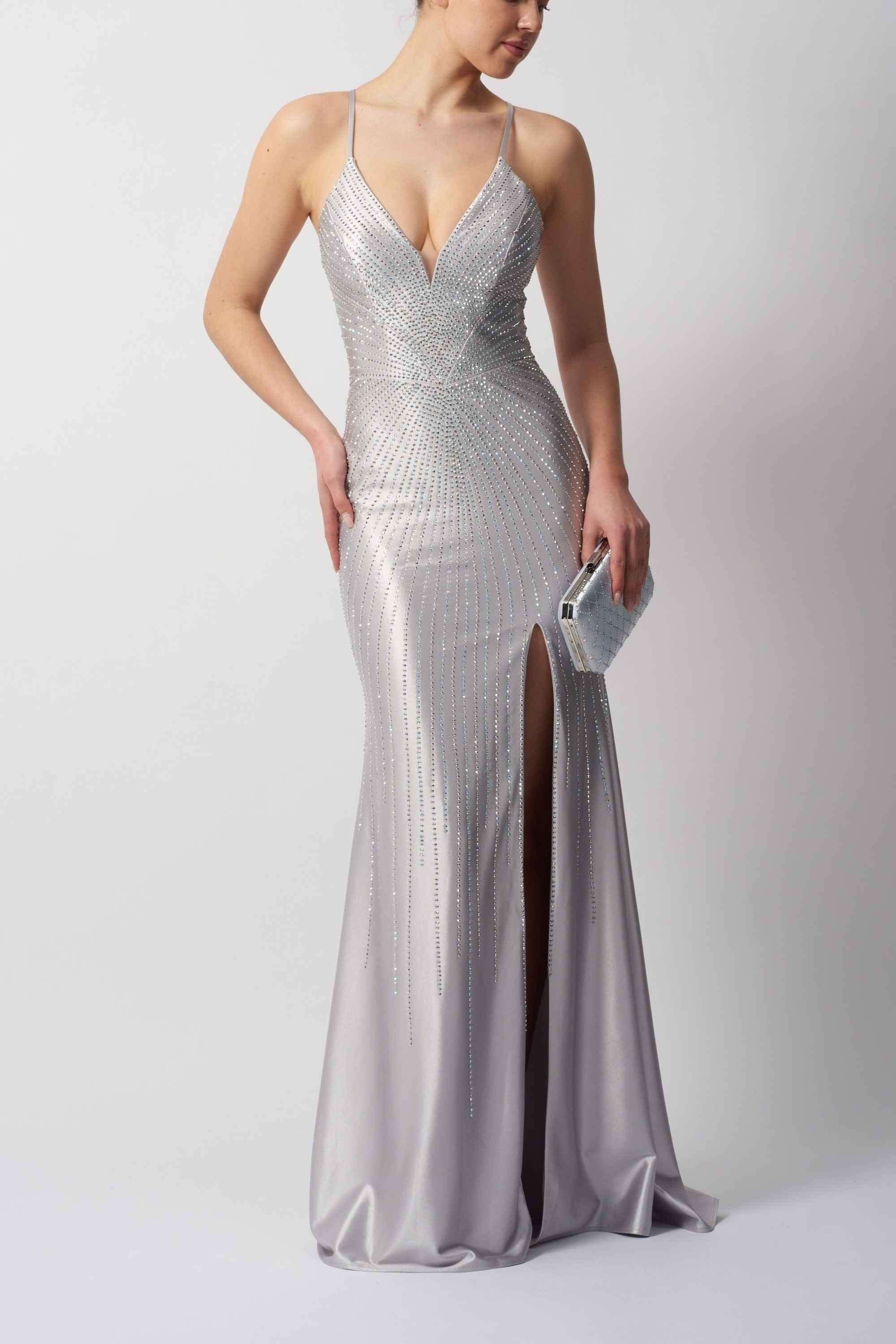Silver Evening Gown MC12511: Formal Mascara Satin Dresses