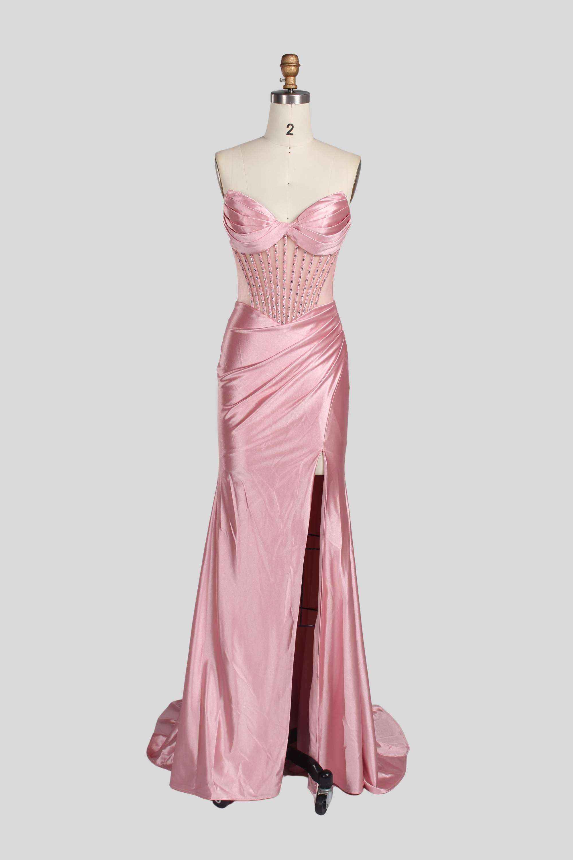 Jessica Stuart Annabelle Satin Strapless Pink Gown