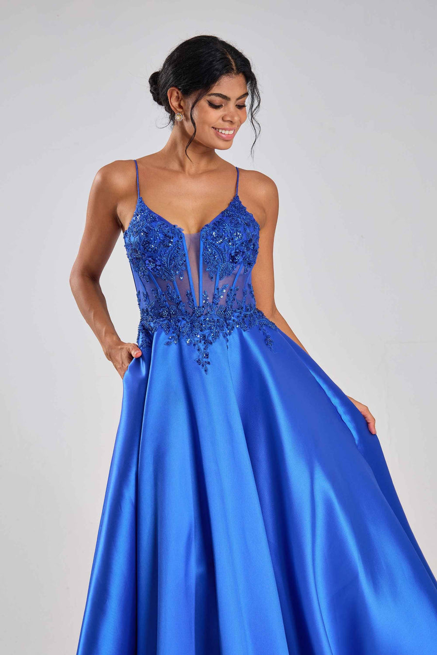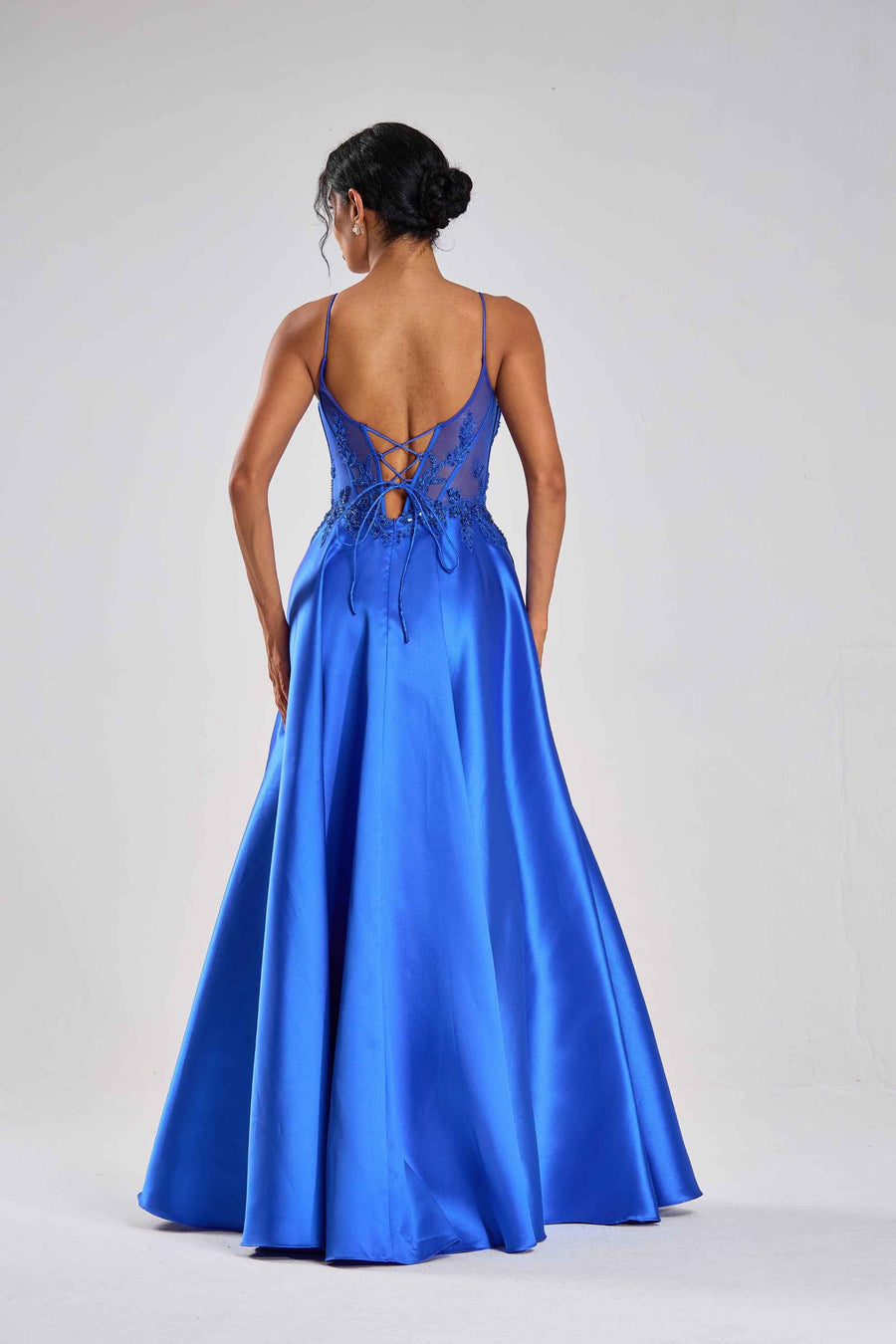 Portia Royal Blue Satin Ballgown by Jessica Stuart