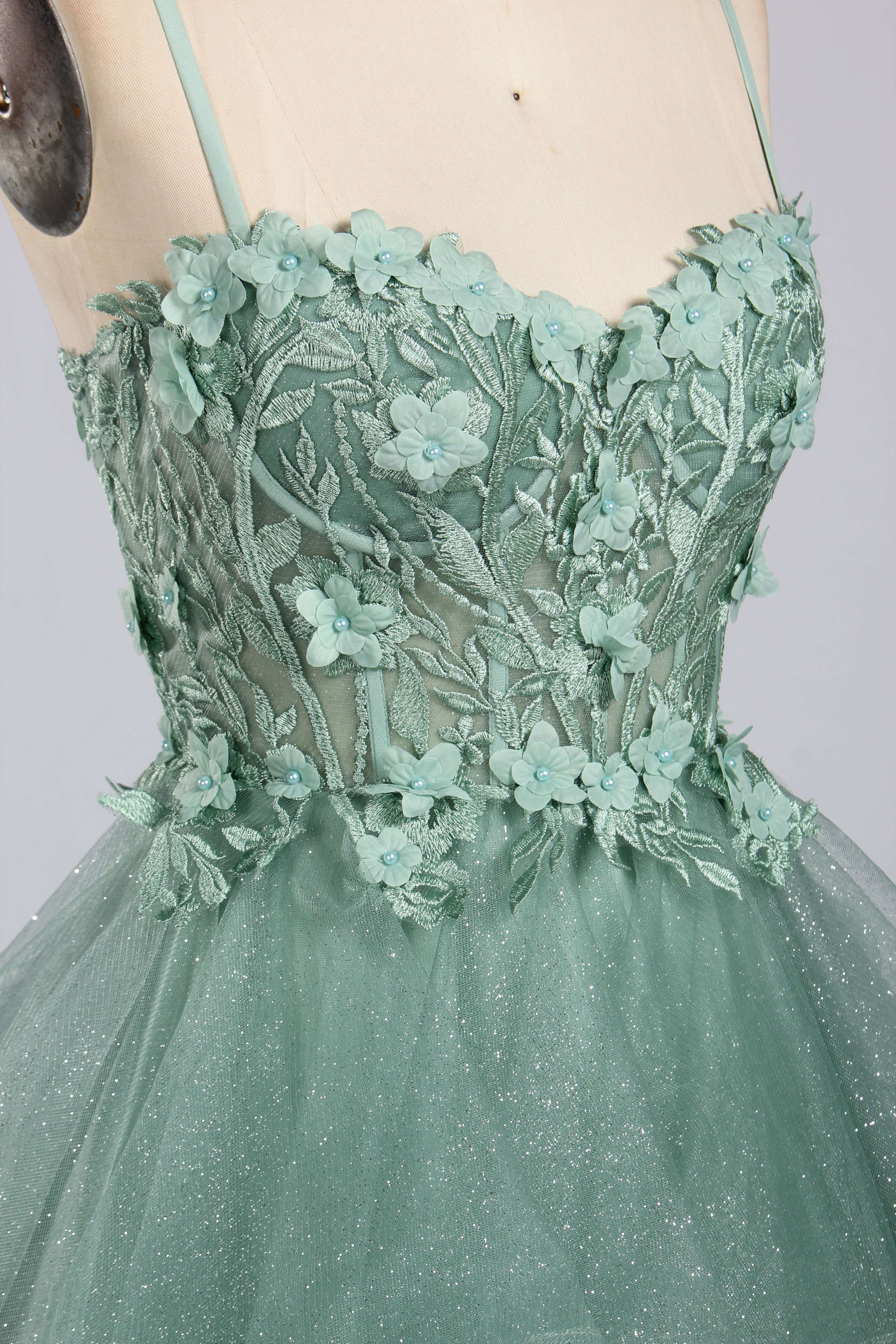 Jessica Stuart Sage Ball Gown: Ruffles Prom Dress